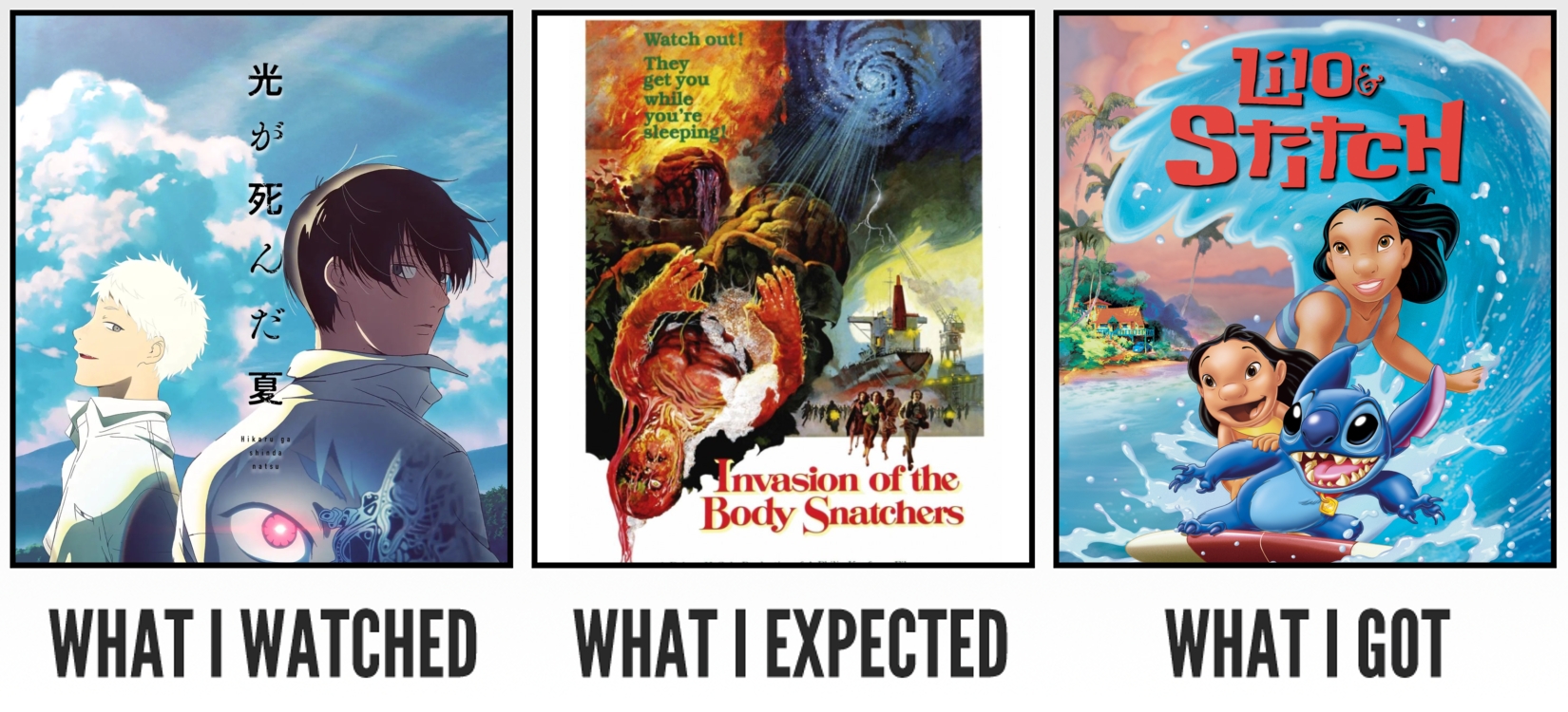 >>5643depends, are you asking as someone who hasn’t seen it? i’d say the uncanny vibes only last for the very first few episodes, then it scatters in some silly moments, then it’s more angsty and introspective until about episode 7ish which tbh is the peak of the anime for me, then everything since then (aside from maybe the latest episode) has been “hey let’s go talk to all the old people we know to solve the town’s mystery” so maybe scooby doo would be a more apt comparison than lilo and stitch kek.