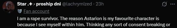 >>12065Not them saying this about ASTARION of all characters, the designated yume bait, the y/n reader insert favorite, the female romance character that everyone was thirsting on before even release kek