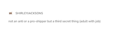 Fits in the venting thread too but being into an anti-disapproved ship is exhausting me so much. 10+ years ago it was everywhere and you could talk about it. Now no one even mentions it if it's not to shit on it, not even acknowledging that the ship is why the characters even got a fandom to begin with. I hate not being able to post my art openly without fear. I hate seeing another western fujo and feeling like they're an enemy instead of a friend because I don't know what their ~fan politics~ are, unless I already know they ship something deemed problematic. I hate the garbage 'safe' ships my OTP get and the fact that they're fucking unavoidable if you see any other shipper into the characters. I hate that I feel a terrible sense of dread just seeing anyone in a random comment-section mention the characters I love.