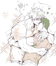 >Seme nearly crushes uke in a hug/basically eats his face with how intense he kisses him