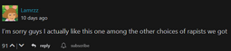 >>12189>the people that generally do this often do it as some sort of "gotcha" same as people who say they like (rareship that I pulled out of my ass) over (likely popular but 'problematic' ship)Definitely see this in popular fandoms. I'm a rarepair enjoyer myself, but you can tell when someone actually likes a rarepair, or if they're just shipping it to be spiteful.