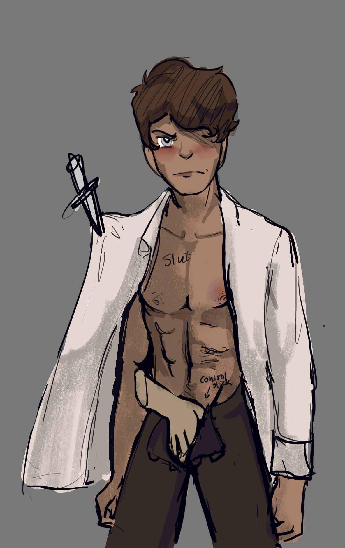 >>1173I read a fic a while back that did something interesting with the design and had Husk be bitter about the fact that he no longer had fingers and just had claws. He was angry dealing cards and opening bottles was hard and when he first got to hell it took him a while to learn to do basic things. I kind of wish more Hazbin fics focused on the characters adjusting to their new bodies or even just mentioned the weird features at all.