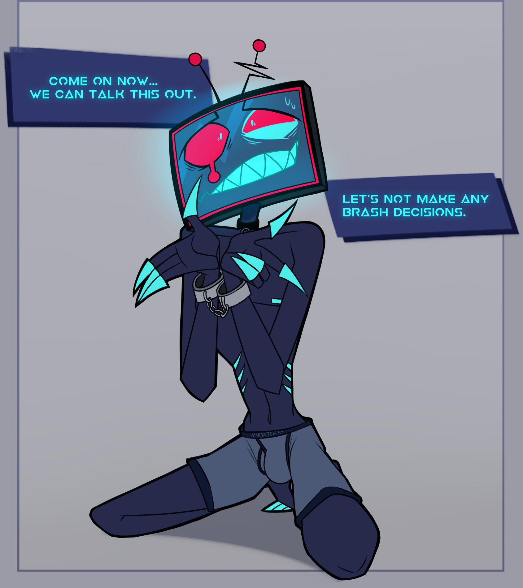 >>858I wish it was easier to have fun English language fandom stuff, I forgot it could even be this fun. Also, ayrt, I think Vox ragefaps and then copes by pretending it didn't happen, and w-well even if it did, it's just because he was jacking off to relax after getting pissed off thinking about Alastor, so he was thinking of how mad Alastor makes him, NOT how bad he wants him, and really it's all that damn Alastor's fault for pissing him off to begin with reeeeee. This just makes him ragefap more though kek. I bet he punches walls over it