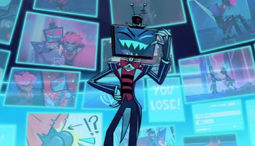television falls on his head was really cool and I like how it paralleled the "antlers" in Alastor's flashback scene.