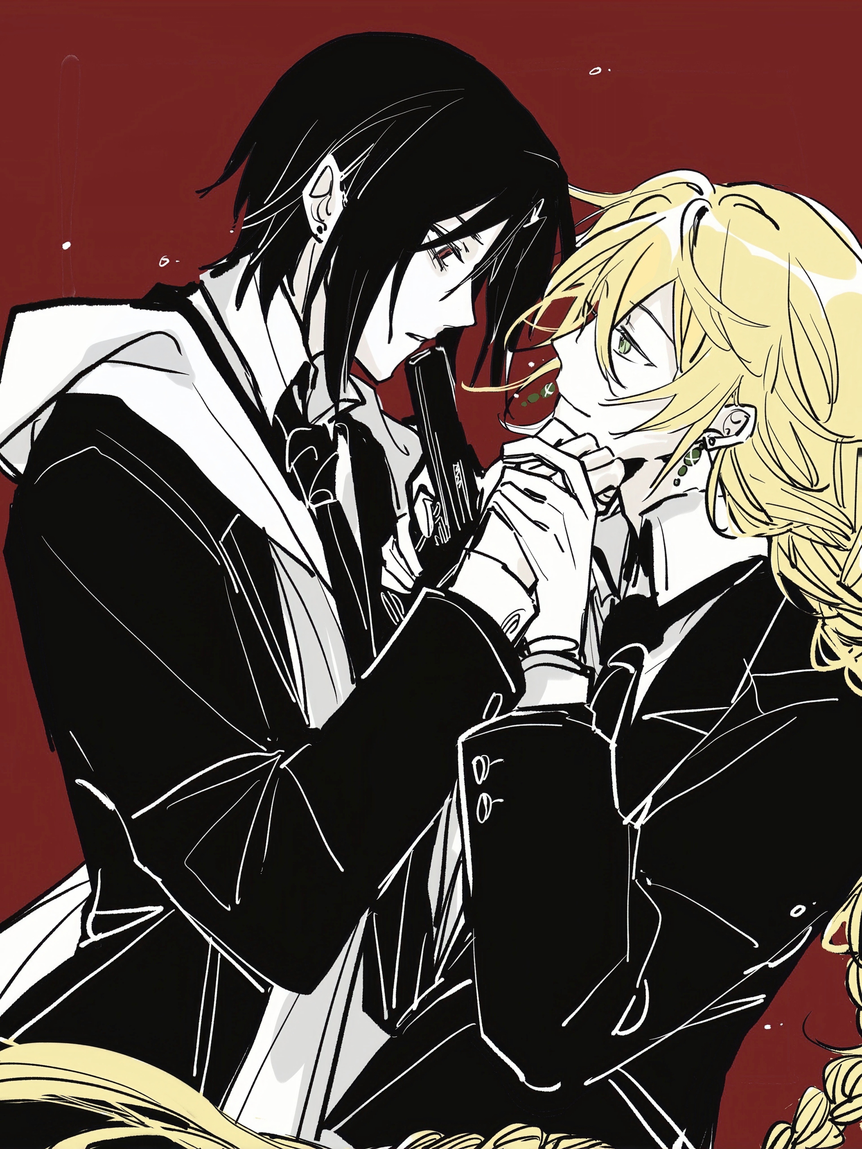 What makes the context of that fanart cuter is that the shorter one (Akagi) is a germaphobe who refuses to touch anything without sterilizing it and wearing gloves. The bigger one is a brainless himbo so they naturally get into a lot of conflict/fighting.