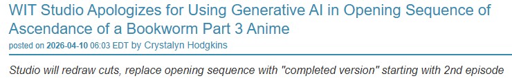 https://www.animenewsnetwork.com/news/2026-01-24/south-korea-new-ai-law-raises-questions-for-webtoon-creators-platforms/.233383>For webtoon creators, the most immediate issue is AI transparency. Under the law, companies that develop or provide AI models and services must clearly disclose AI-generated content. This includes a watermark requirement for generative AI outputs, with stricter visible labeling for deepfake-style content. For formats like webtoons and animation, non-visible, machine-readable watermarks are allowed, easing concerns about disrupting the reading and viewing experience. However, creators still worry about how broadly “AI-generated” content is defined.>The law does not regulate individual users who simply use AI tools, but it does apply to platforms and companies that offer AI-powered creation tools or distribute AI-generated works. Major webtoon platforms that operate in Korea or offer services to Korean users may need to adjust workflows, disclosure systems, and UI notices when AI is involved in production.When will Japan follow?