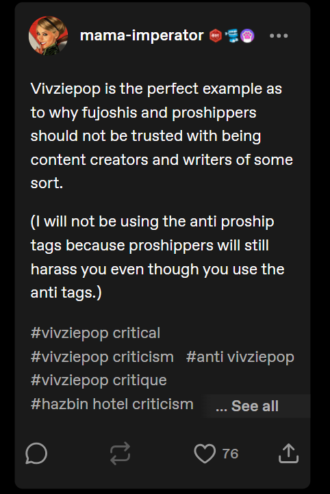 They've got a real issue with fujos who turn ftm, which, fair, but they seem to think that all fujos will poon out at some point.