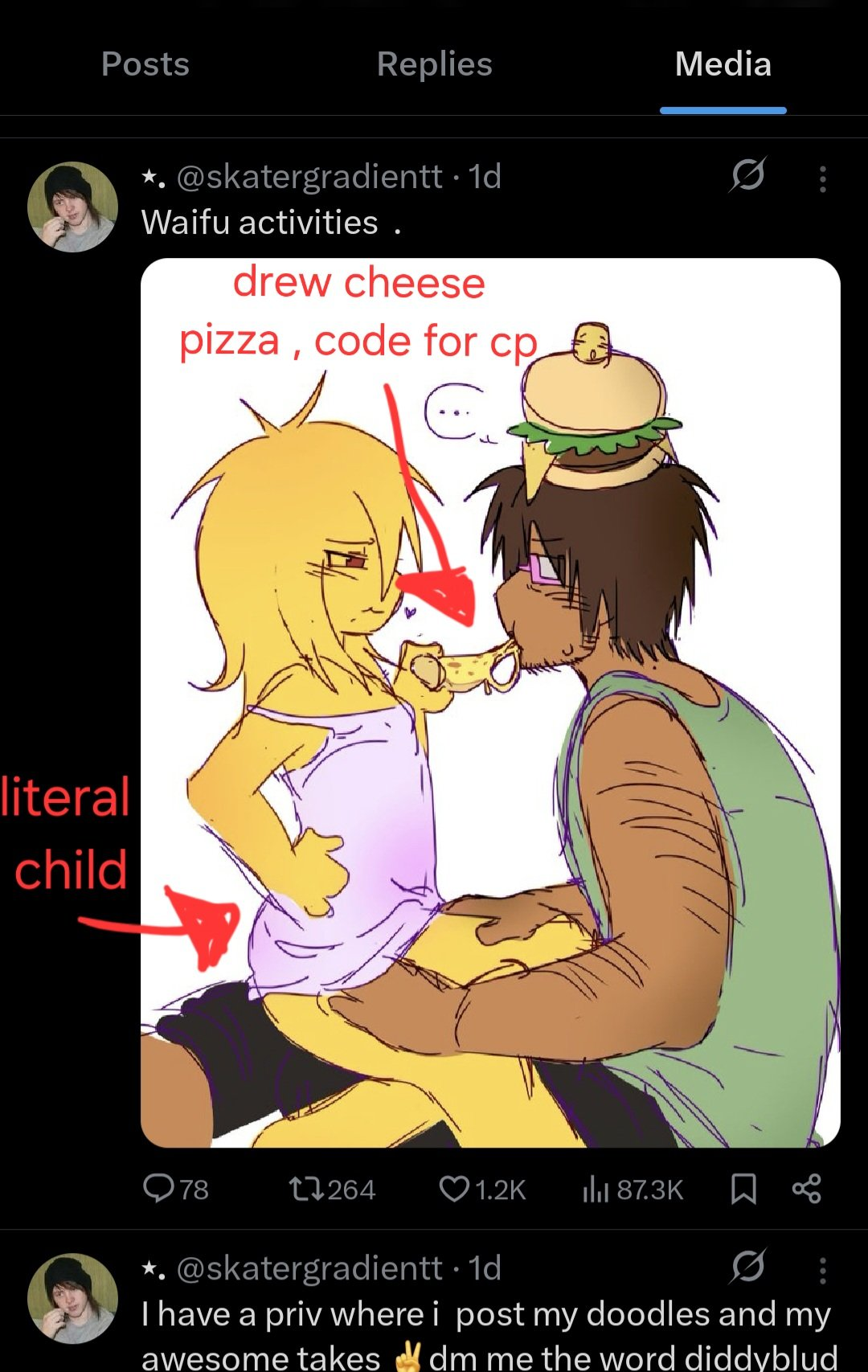>>9039>I'm still gonna make fun of people with weird fetishes that aren't my own though.I think theres a distinction between making fun of someone vs dedicating your entire time and personality to being a hater. Sure I'll mock some of the tropes I hate but I wont go out of my way to find said people who like the content and complain about how their taste sucks upfront. I'd rather stay in my bunkered off FUB free 20k blocklist curated twitter account than touch shit taste with a 20 meter stick