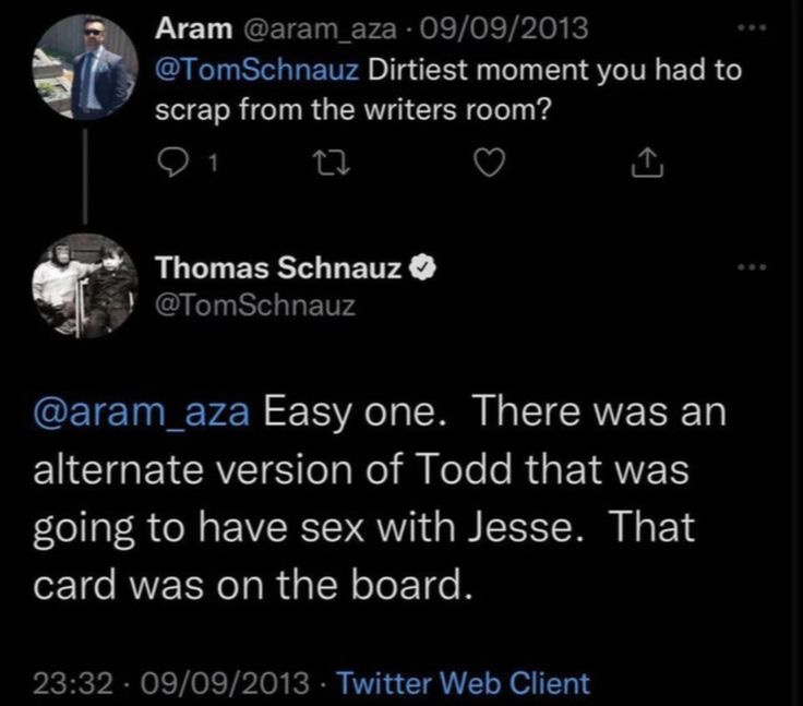 >>1522It's so peak. I don't know who Todd is yet (I've just started s4) but Jesse deserves to be yaoified for all the suffering he goes through